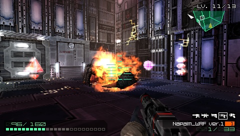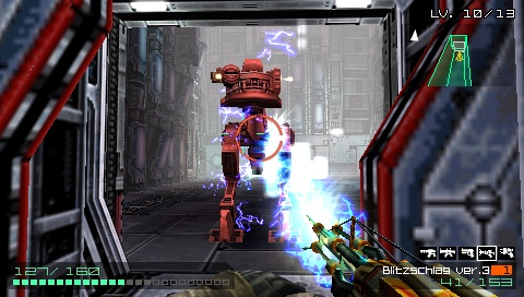 Bei Coded Arms fungieren die rechten Steuerungstasten auf dem Gerät als Richtungstasten und bilden damit einen Ersatz für den fehlenden Analogstick. Ziemlich clever. Durch Ergänzung eines großzügigen Auto-Aims beim Beschuss von Feinden lässt sich der Sci-Fi Shooter in der Praxis erstaunlich gut spielen. Zudem gibt’s mehrere Optionen für alternative Tastenbelegen (ich empfehle Variante C) sowie erweiterte Einstellungsmöglichkeiten für Sensitivität und Geschwindigkeit. In Punkto Steuerbarkeit ist der Konami-Titel also ein gelungener Showcase, wie ein FPS auf Playstation Portable funktionieren kann.